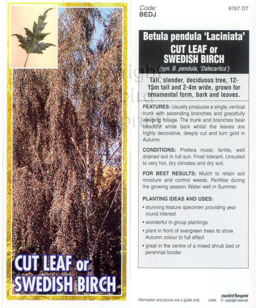 BETULA PENDULA LACINIATA CUT LEAF OR SWEDISH BIRCH Jumbo Tag
