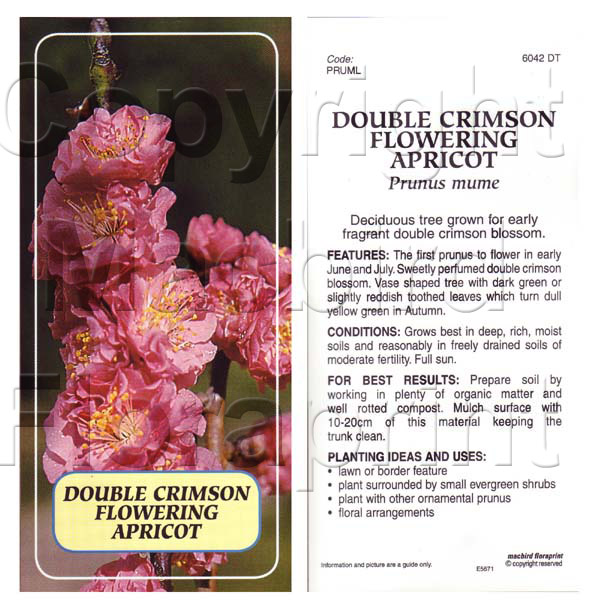 PRUNUS MUME DOUBLE CRIMSON FLOWERING APRICOT Jumbo Tag
